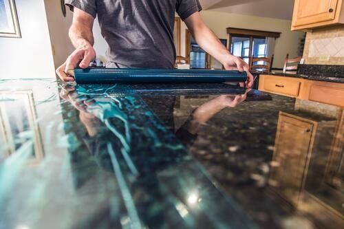 카운트탑은 까다로운 영화 실제적 스톤 표면 보호 막에 대리석 무늬를 넣습니다