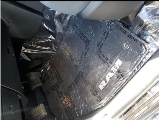 아주 튼튼하 자체 접착적 카펫 커버는 "딜러가 보호 커버를 제거하 " 각각 매트에 인쇄되게 합니다. 그아이브는 새 차가 보고, 이 보호막으로 느낀 차를 사용했습니다.
